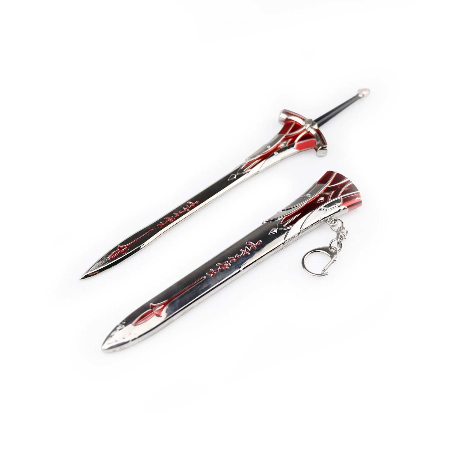 Zanurz się w fascynującym świecie "Fate" dzięki temu niesamowicie szczegółowemu, metalowemu breloczkowi z mieczem o długości 22 cm! Odzwierciedlając wspaniały czerwony kolor i srebrne detale widoczne na zdjęciach, ten brelok jest prawdziwym arcydziełem rzemiosła, pozwalającym nosić moc fantazji w kieszeni. Każda krzywizna, krawędź i szczegół zostały starannie odtworzone, od eleganckiej rękojeści po smukłe ostrze, dzięki czemu jest to obowiązkowe akcesorium dla młodych i starych fanów! Dlaczego ten brelok jest legendarny: Autentyczny design "Fate", przenoszący wirtualny świat do rzeczywistości! Wytrzymała konstrukcja ze stopu cynku gwarantuje trwałość, tak jak historie z "Fate"! Jego imponujący design pobudza wyobraźnię, idealny do gier fabularnych lub jako efektowny dodatek do plecaka. Błyszczące czerwone akcenty i wykończenie na wysoki połysk zapewniają, że będzie wyróżniać się w tłumie, oddając esencję majestatycznej aury miecza. Skorzystaj z okazji, aby posiadać kawałek swojego ulubionego uniwersum fantasy! Uczyń każdy dzień przygodą, nosząc ten symbol siły i odwagi.