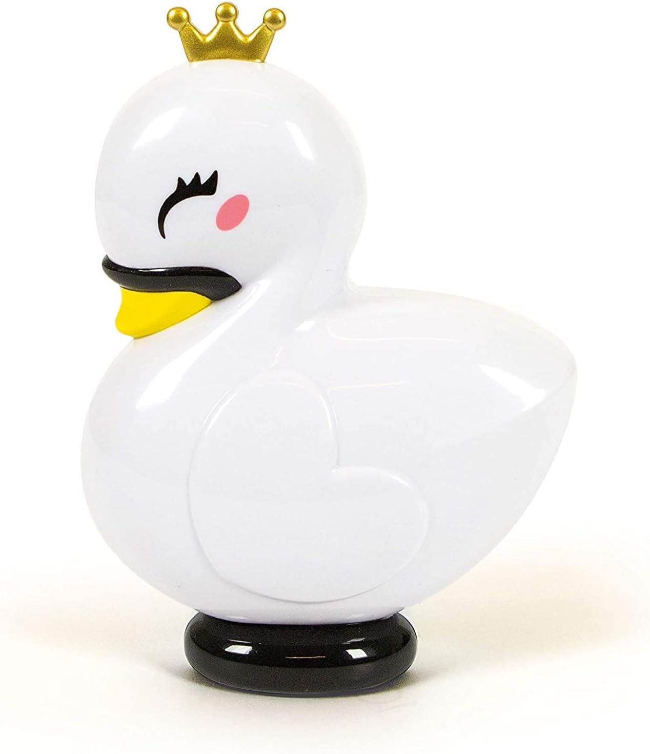 etui na makijaż w kształcie łabędzia, w kompaktowym rozmiarze pozwalającym nosić go wszędzie oraz z paletą delikatnych odcieni dla naturalnego wyglądu, który zawsze jest na czasie