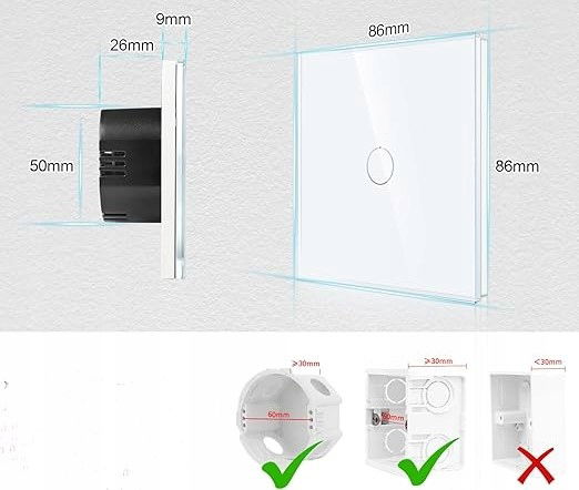 - Wymiary: 86 mm x 86 mm, szerokość 25 mm – idealny do skrzynek ściennych.