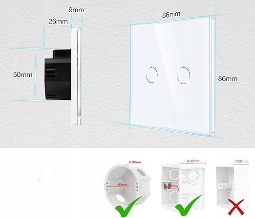 CNBINGO Dotykowy włącznik światła podtynkowego - 2-krotne zastosowanie paneli LED ze szkła