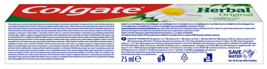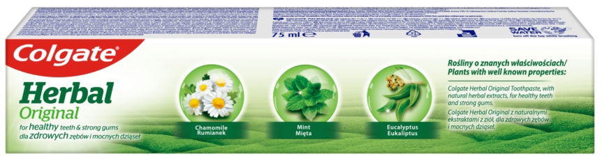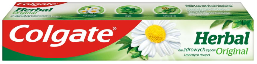 Pasta do zębów Colgate Herbal to pasta zawierająca w swoim składzie ekstrakty ze znanych i naturalnych ziół tj. Rumianek, Mięta i Eukaliptus. Pasta do zębów od Colgate zapewnia codzienną pielęgnację zębów i dziąseł.