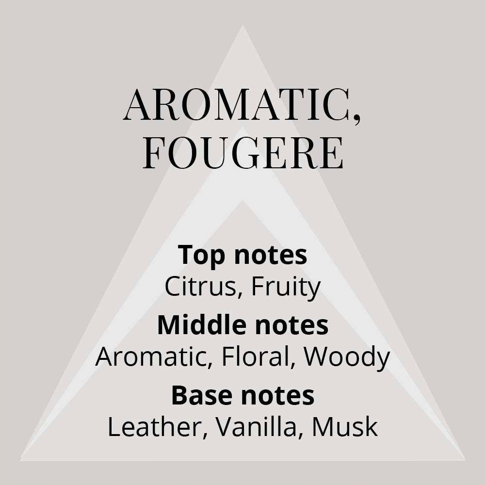 Odpowiedni balans i unikalny skład nie dający się pomylić wśród setki innych. Skład zapachu Witalny męski zapach aromatycznego kardamonu oraz zielonej herbaty precyzyjnie łączy się ze świeżymi akordami cytrusów i bergamotki w nucie serca tak aby w bazie zaskoczyć wyjątkowym aromatem fougere oraz drzewa, bursztynu i piżma.