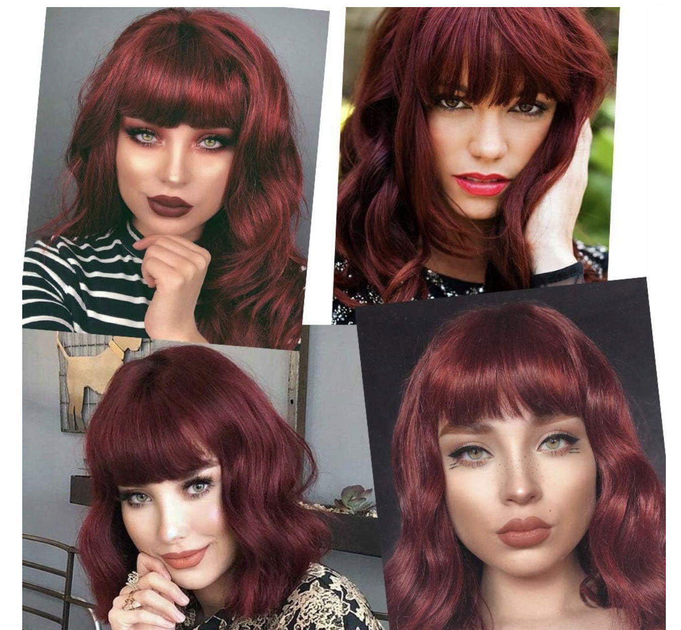 Colorfulpanda Peruka włosy krótkie z grzywką dla kobiet intensywny czerowny