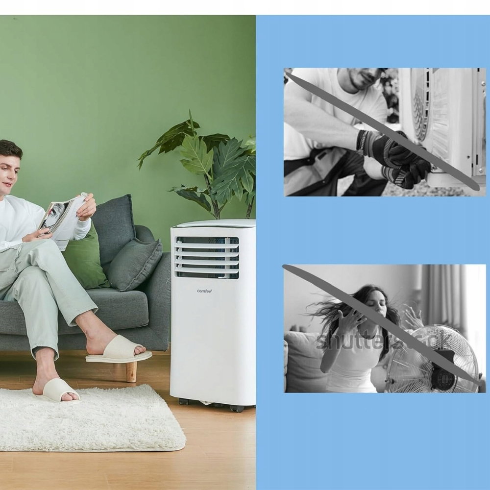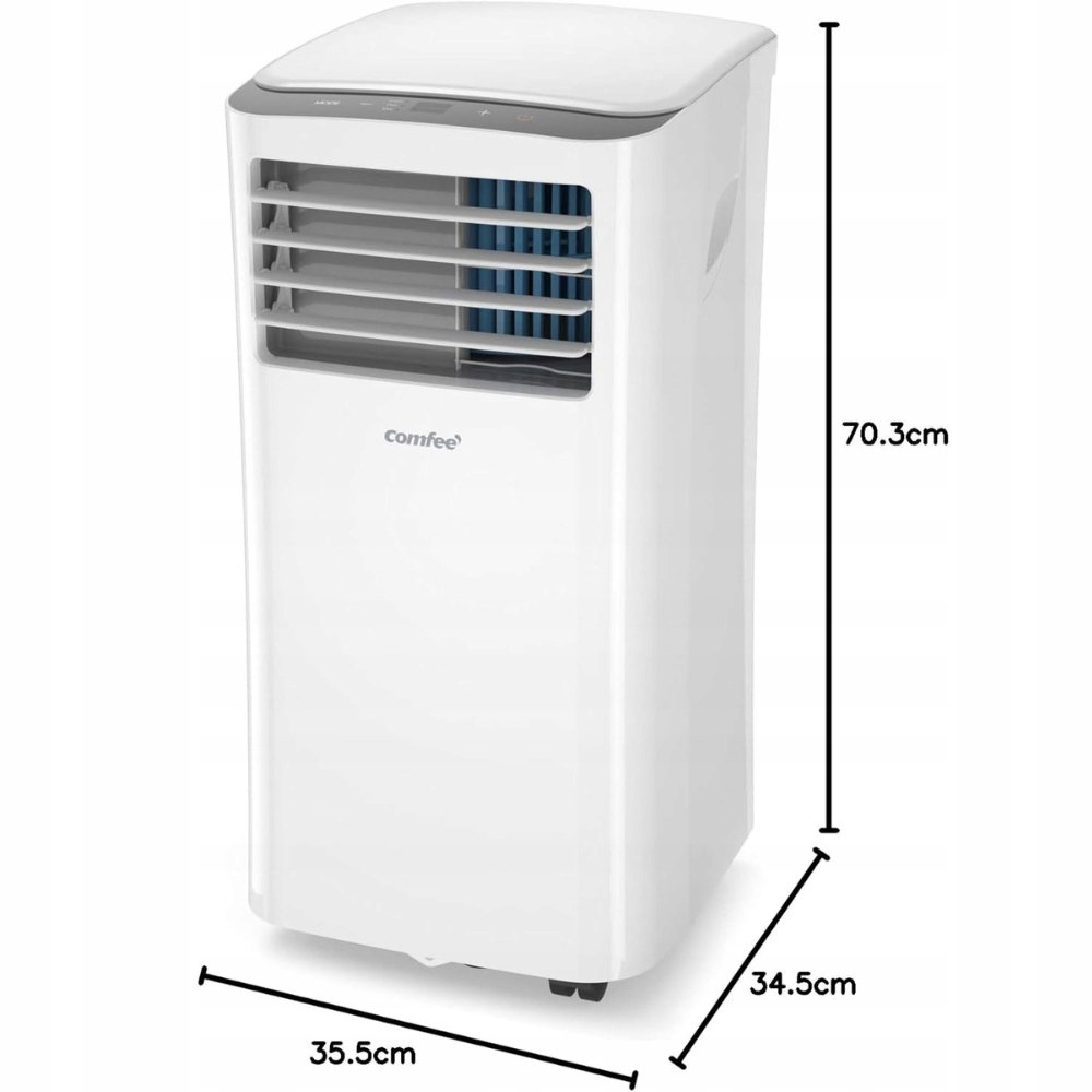 Wydajny klimatyzator przenośny Comfee zapewnia chłodzenie, wentylację i osuszanie powietrza w jednym urządzeniu. Idealny do pomieszczeń do 32 m², z energooszczędną klasą A i funkcją snu.