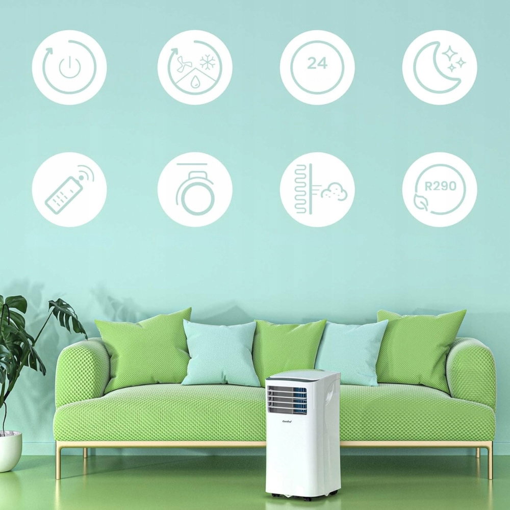 Klimatyzator Comfee MPPH-09CRN7 oferuje chłodzenie, osuszanie i wentylację w jednym. Dzięki temu nie tylko schładza powietrze, ale także skutecznie usuwa nadmiar wilgoci i zapewnia odpowiednią cyrkulację powietrza.
