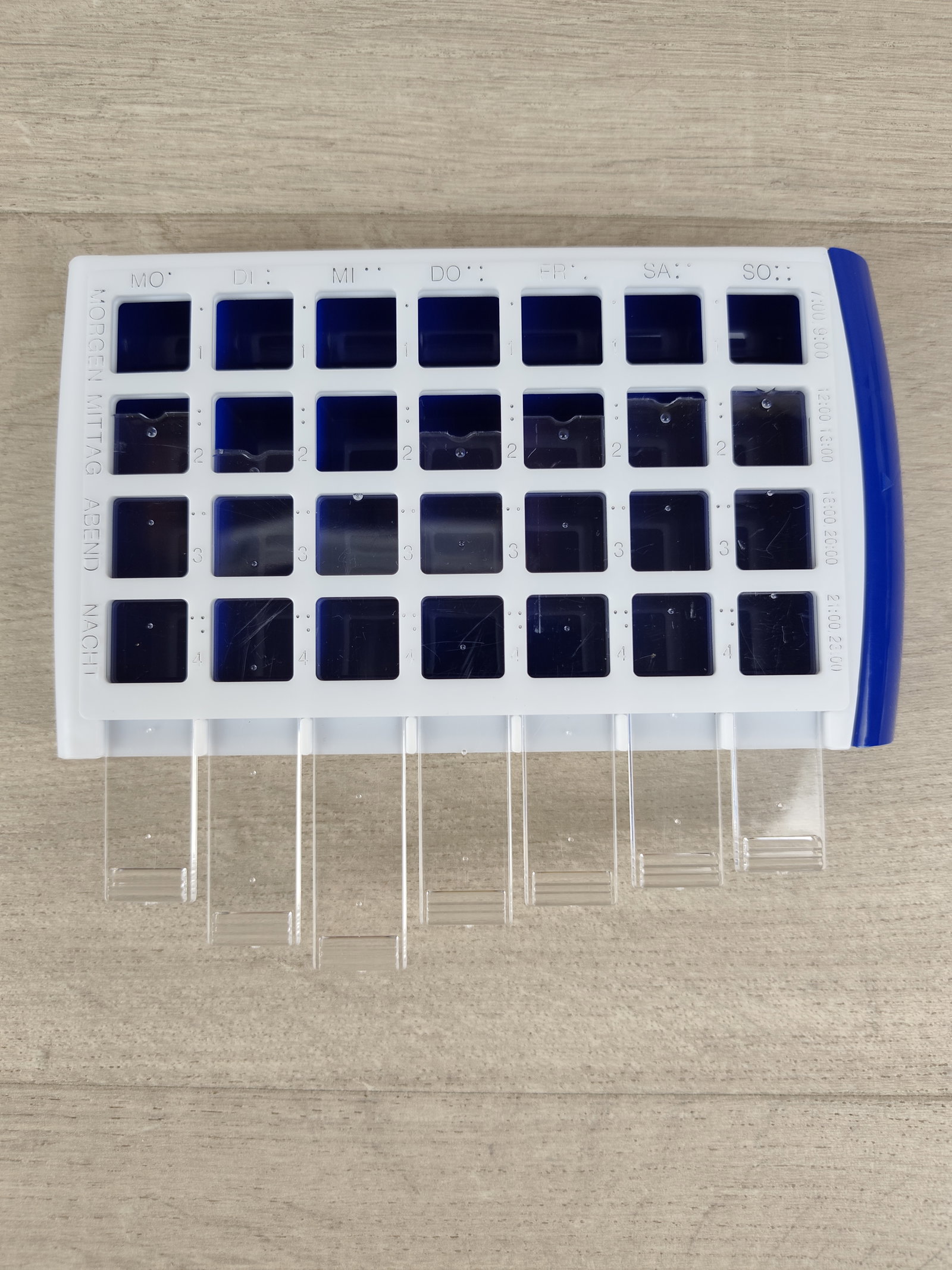 Każdy z 7 modułów jest wysuwany, co ułatwia codzienne korzystanie. Organizer jest lekki, poręczny i idealny zarówno do domu, jak i w podróż. Przed pierwszym użyciem wystarczy go umyć — konstrukcja pozwala na szybkie i wygodne czyszczenie.