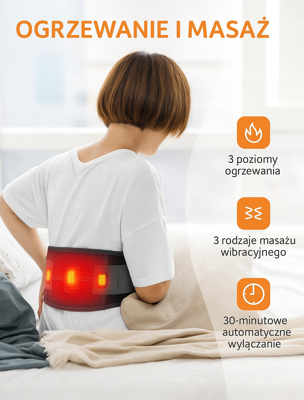 Comfytemp Pas Masująco-Grzewczy na Plecy, 3 Tryby, 5000mAh, 147 cm