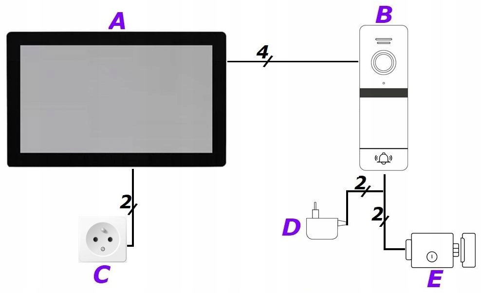 - instalacja czteroprzewodowa + obwód elektrozamka