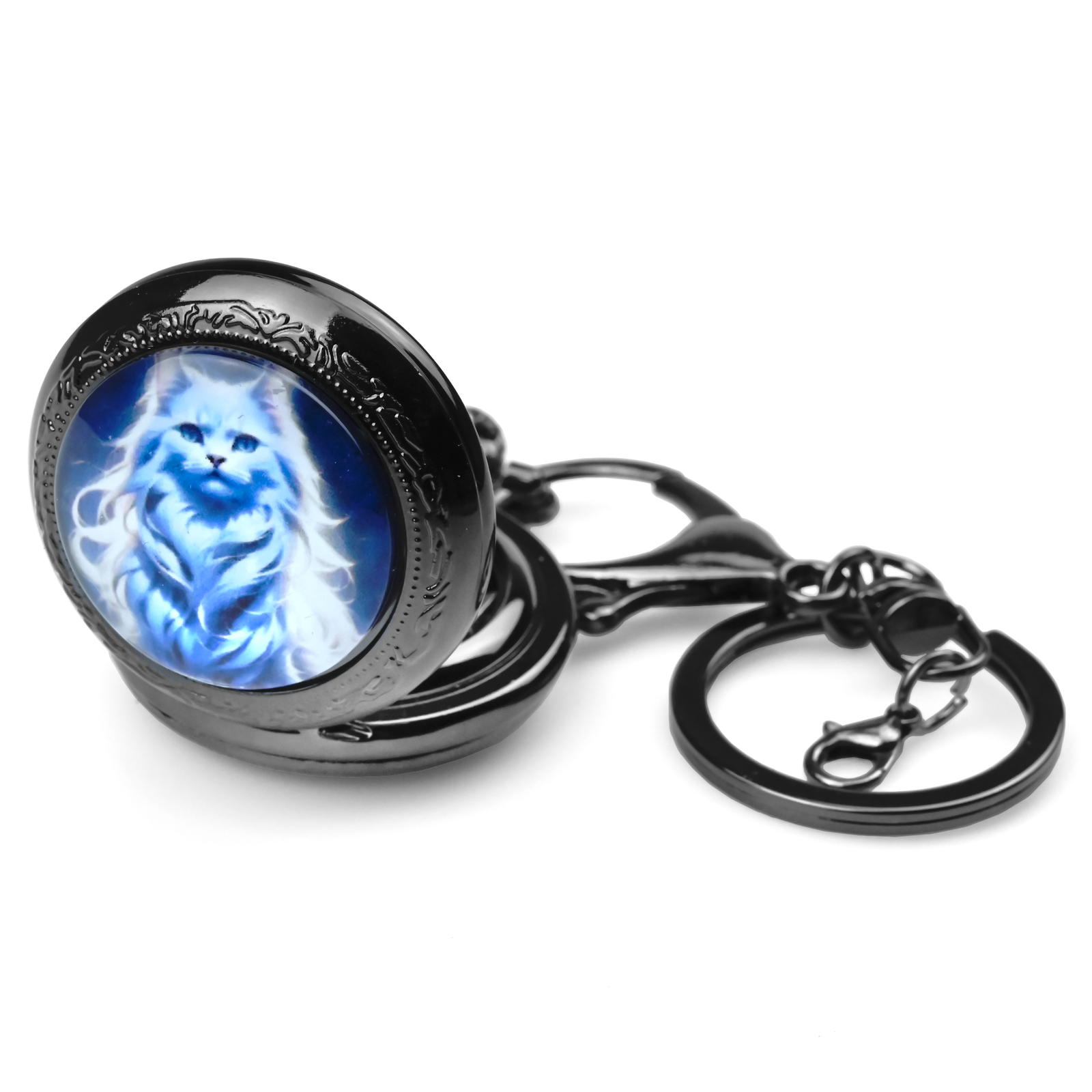 Dodaj odrobinę magii do swoich codziennych akcesoriów dzięki temu wyjątkowemu brelokowi i pojemnikowi na kostki o średnicy 6 cm, wykonanemu z metalu. Projekt "Uroczy Kot" zachwyca szczegółowym wizerunkiem kota, otoczonego misternymi zdobieniami, który lśni eterycznymi odcieniami niebieskiego, łącząc elegancję z urokiem. Wykonany z trwałego metalu, ten kolekcjonerski gadżet jest idealny dla fanów gier stołowych i miłośników unikalnych przedmiotów. Kompaktowy design umożliwia bezpieczne przechowywanie miniaturowych kostek, dzięki czemu doskonale sprawdzi się podczas sesji gier, a także jako stylowy dodatek do kluczy, plecaka czy na półkę dekoracyjną. Świętuj swoją pasję dzięki tej unikalnej kolekcji, łączącej funkcjonalność i artystyczny urok, inspirowanej magicznym światem gier i fantazji.