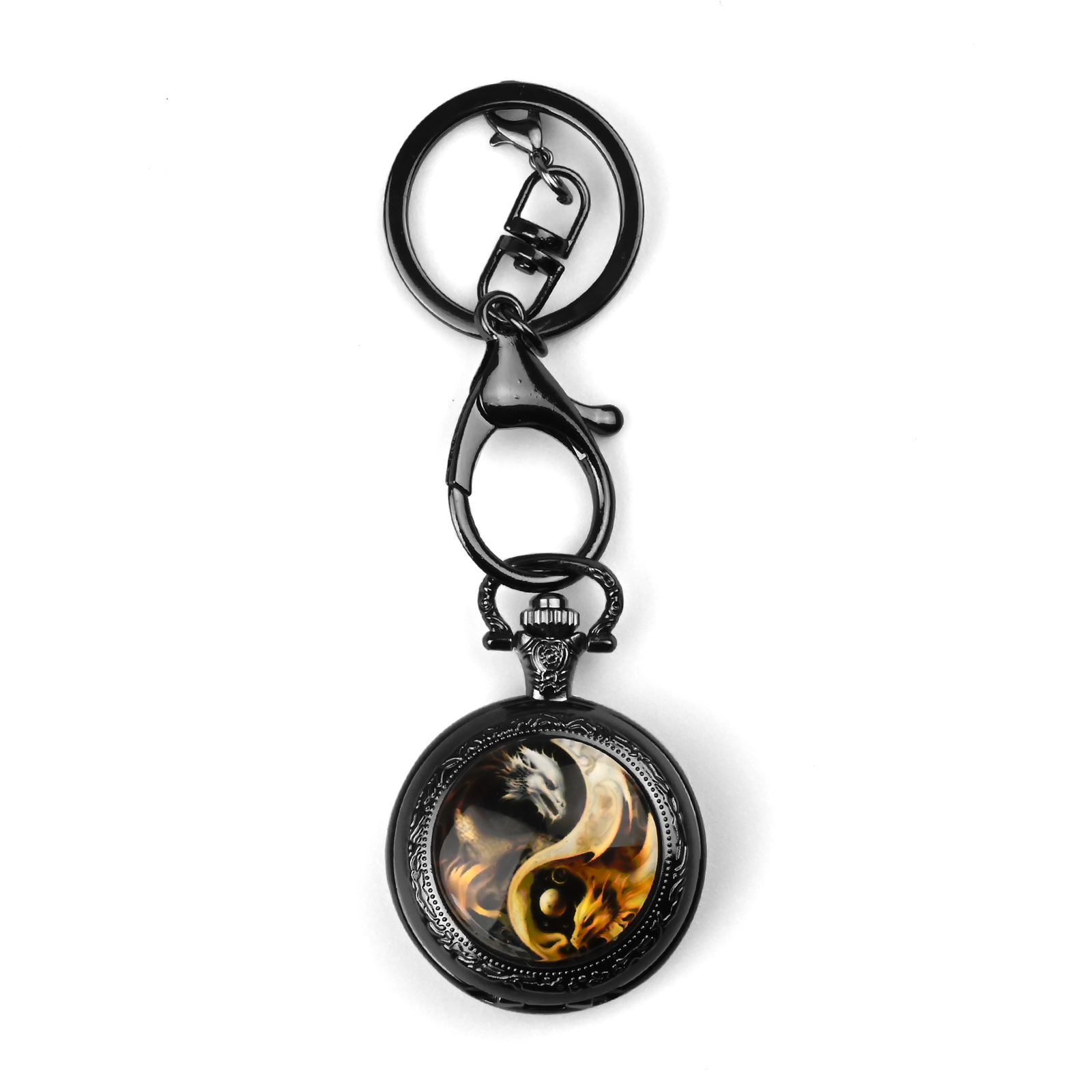 Uwolnij moc równowagi dzięki temu brelokowi i pojemnikowi na kostki o średnicy 6 cm, wykonanemu z metalu. Wyróżnia się imponującym projektem yin-yang z dwoma smokami, które symbolizują harmonię ognia i lodu. Idealny dla fanów gier stołowych, ten kolekcjonerski gadżet, jak widać na załączonych zdjęciach, zachwyca polerowanym metalowym wykończeniem i misternymi zdobieniami. Przechowuje miniaturowe kostki, co czyni go doskonałym towarzyszem dla miłośników Dungeons and Dragons lub wyjątkowym dodatkiem do kluczy, plecaka czy dekoracyjnej półki. Świętuj swoją pasję do przygód i opowieści dzięki tej unikalnej kolekcji, która łączy funkcjonalność z ikoniczną sztuką fantasy.
