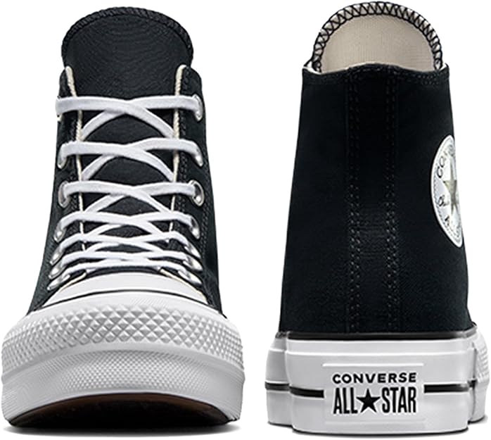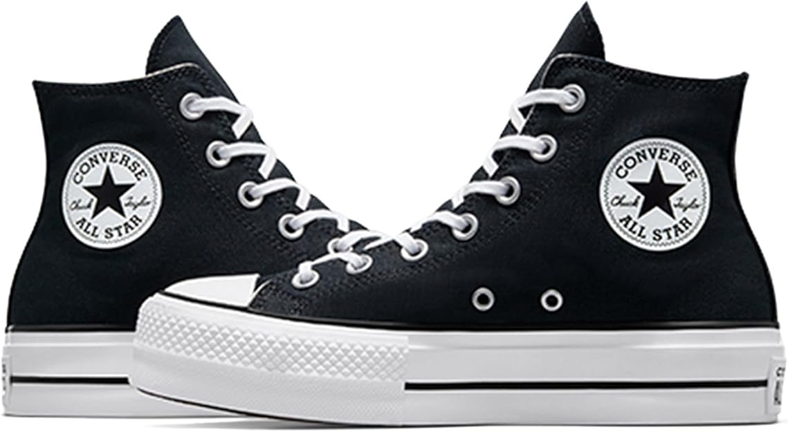 Converse All Star Chuck Taylor to ikoniczne trampki, które od lat '57 zachwycają swoją unikalną stylistyką. Te platformowe trampki w czarno-białym kolorze łączą klasyczny wygląd z nowoczesnym akcentem. Cholewka wykonana z płótna jest umieszczona na gumowej podeszwie platformowej, która dodaje wysokości i stylu. Nakładka na palce, paski na podeszwie środkowej oraz gwiazdkowa naszywka na kostce podkreślają charakterystyczny design Converse. Zapięcie na sznurowadła zapewnia idealne dopasowanie.