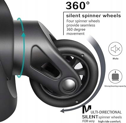 Ciche i gładkie wielokierunkowe koła obrotowe: kółka z zupełnie nowatorskiego, miękkiego TPU; bagaż porusza się bardzo cicho i płynnie dzięki 4 kółkom obracającym się o 360°