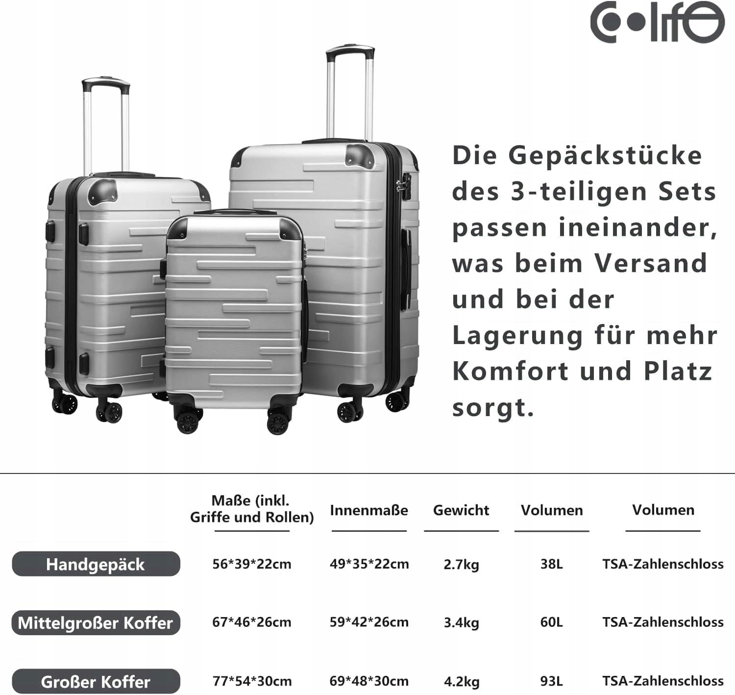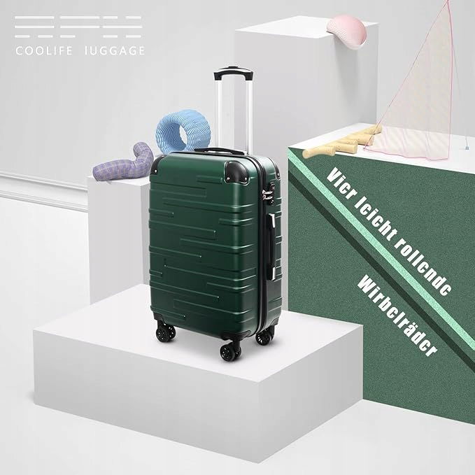 Coolife Bagaż TSA Zestaw 3 walizek 4 kółka zieleń, 93L, 60L, 38L.