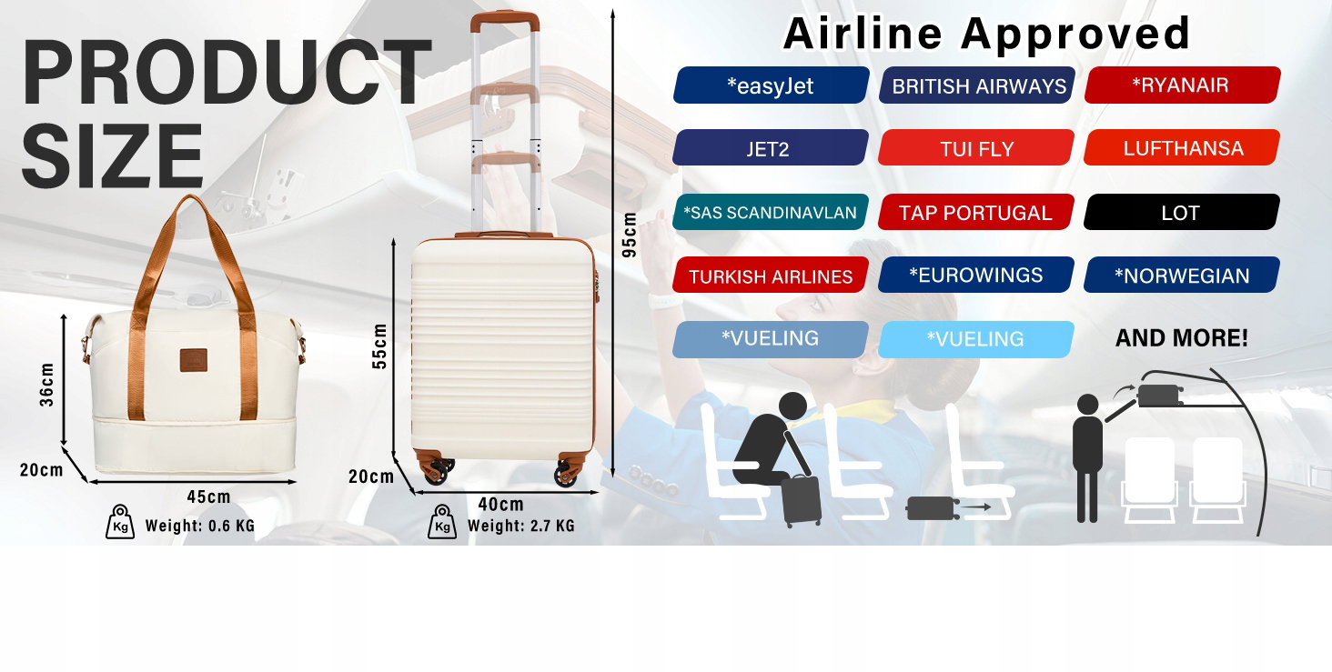 Zestaw podróżny - Walizka 38 L + duża torba + kosmetyczka