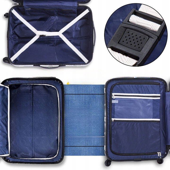 Szczegółowe wnętrze: wnętrze walizki pokryte jest dwiema warstwami materiałów. Tkanina poliestrowa i cienka warstwa pianki, aby zwiększyć elastyczny bufor i dodać komfort. Również z kieszenią wewnętrzną na zamek błyskawiczny i elastycznym, kwadratowym designem.