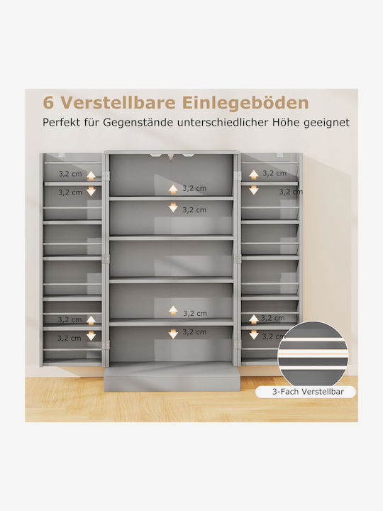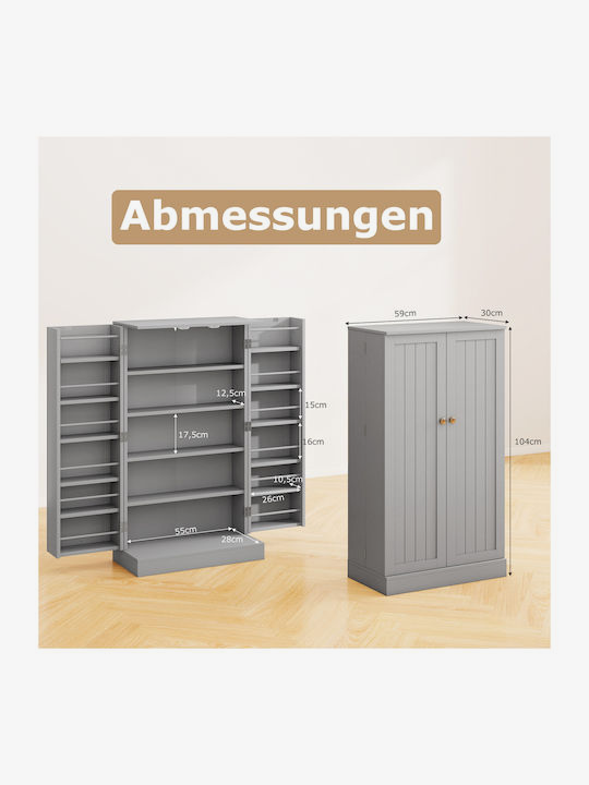 szafka spożywcza ma 104 cm wysokości i oferuje bogatą przestrzeń do przechowywania, w tym średnią 5-poziomową szafkę i 6 stojaków na drzwi z zabezpieczeniem przeciw upadkom z każdej strony. Te 6 półek jest regulowanych w 3 miejscach, co pozwala na zorganizowanie przekąsek, napojów, składników ciasta, przypraw, potraw i innych.