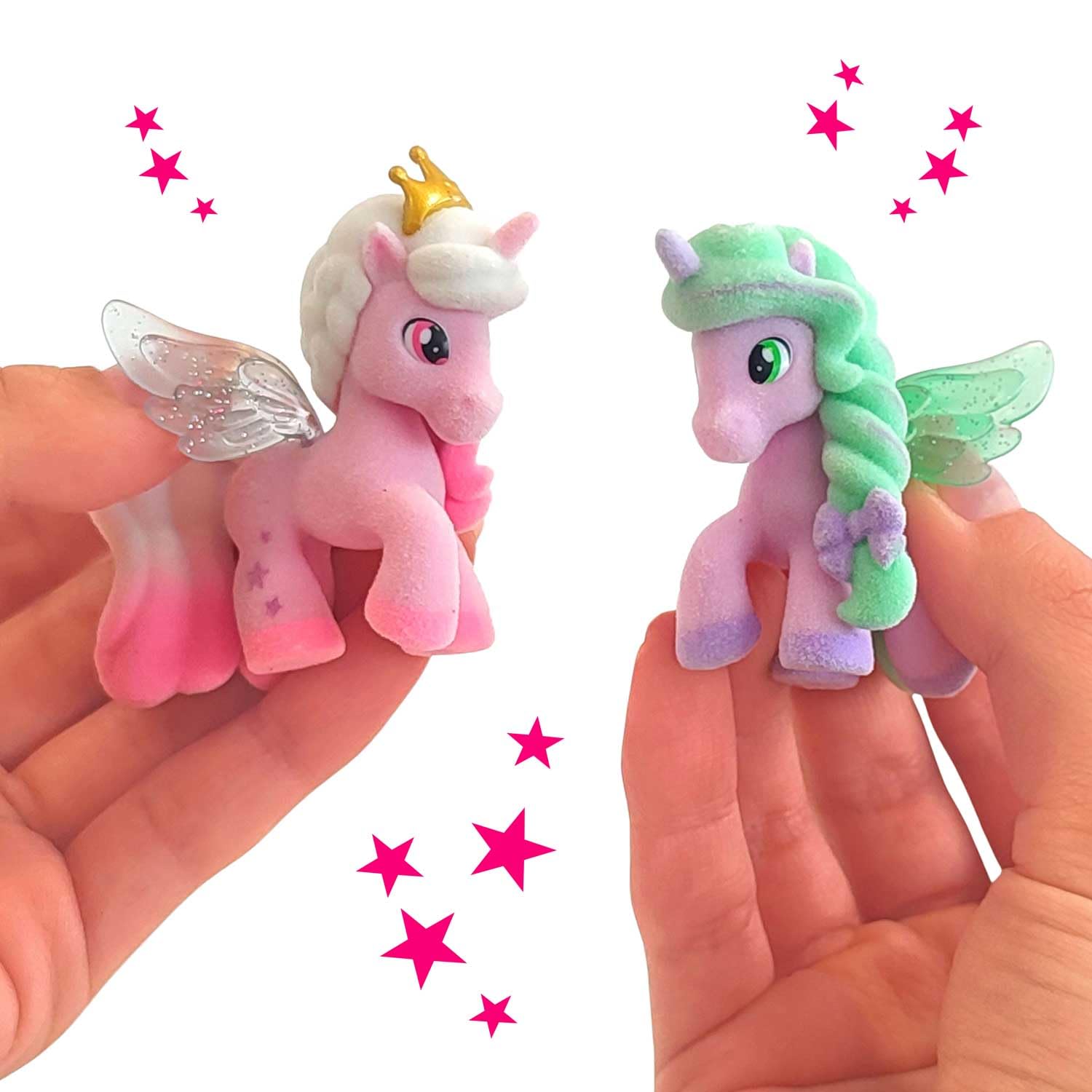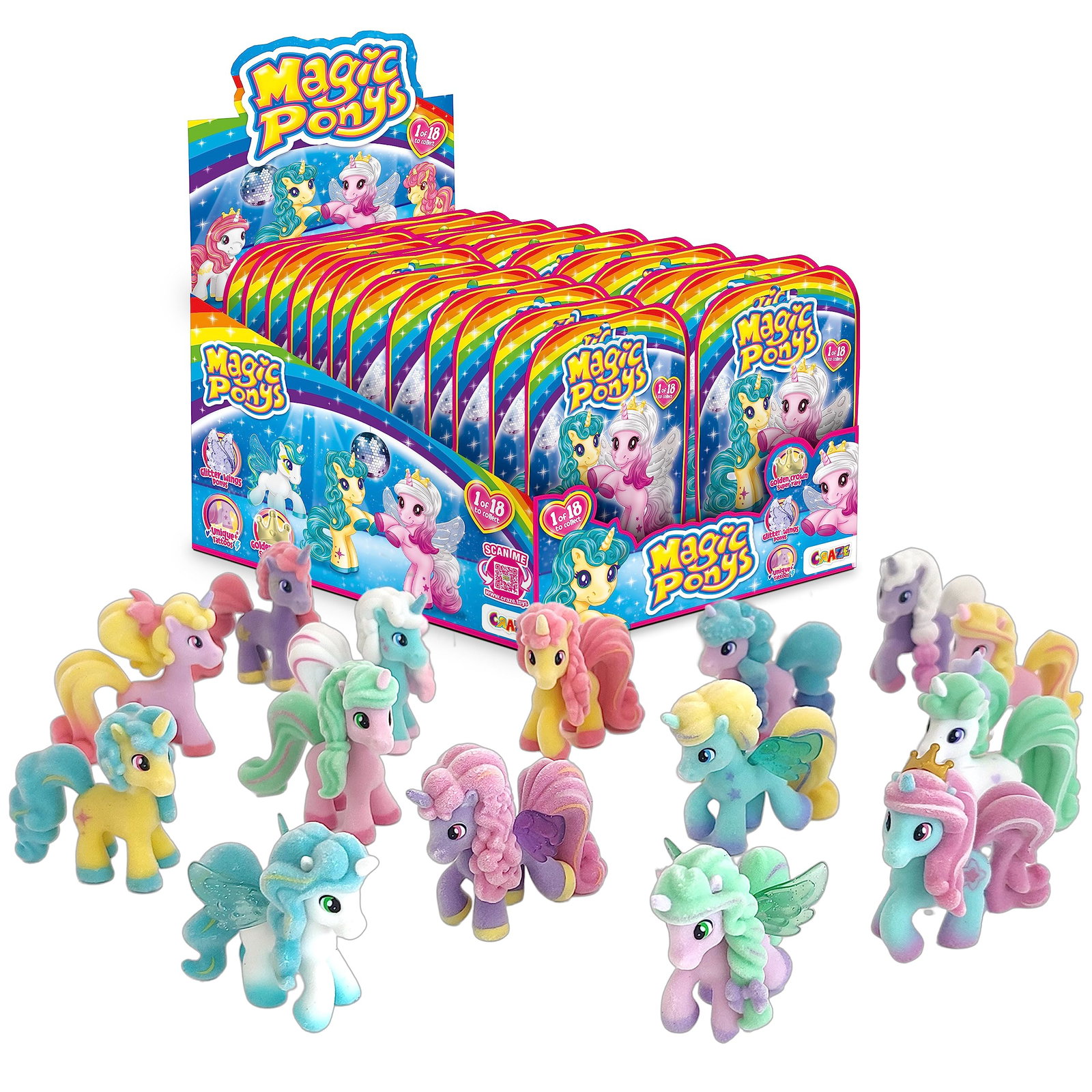Pony Toy Girl: W sumie znajduje się 18 figurek dla dzieci, 6 kucyków na dom. Każdy dom ma 1 specjalny i rzadki magiczny kucyk. Łatwo je rozpoznasz: nosi złotą koronę!
