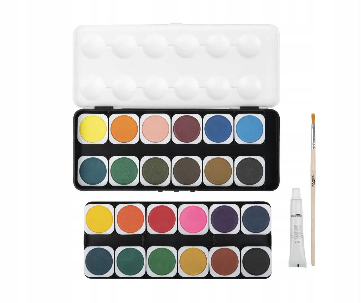 Crelando farby akwarelowe 24 kolory zestaw z pędzelkiem i paletą