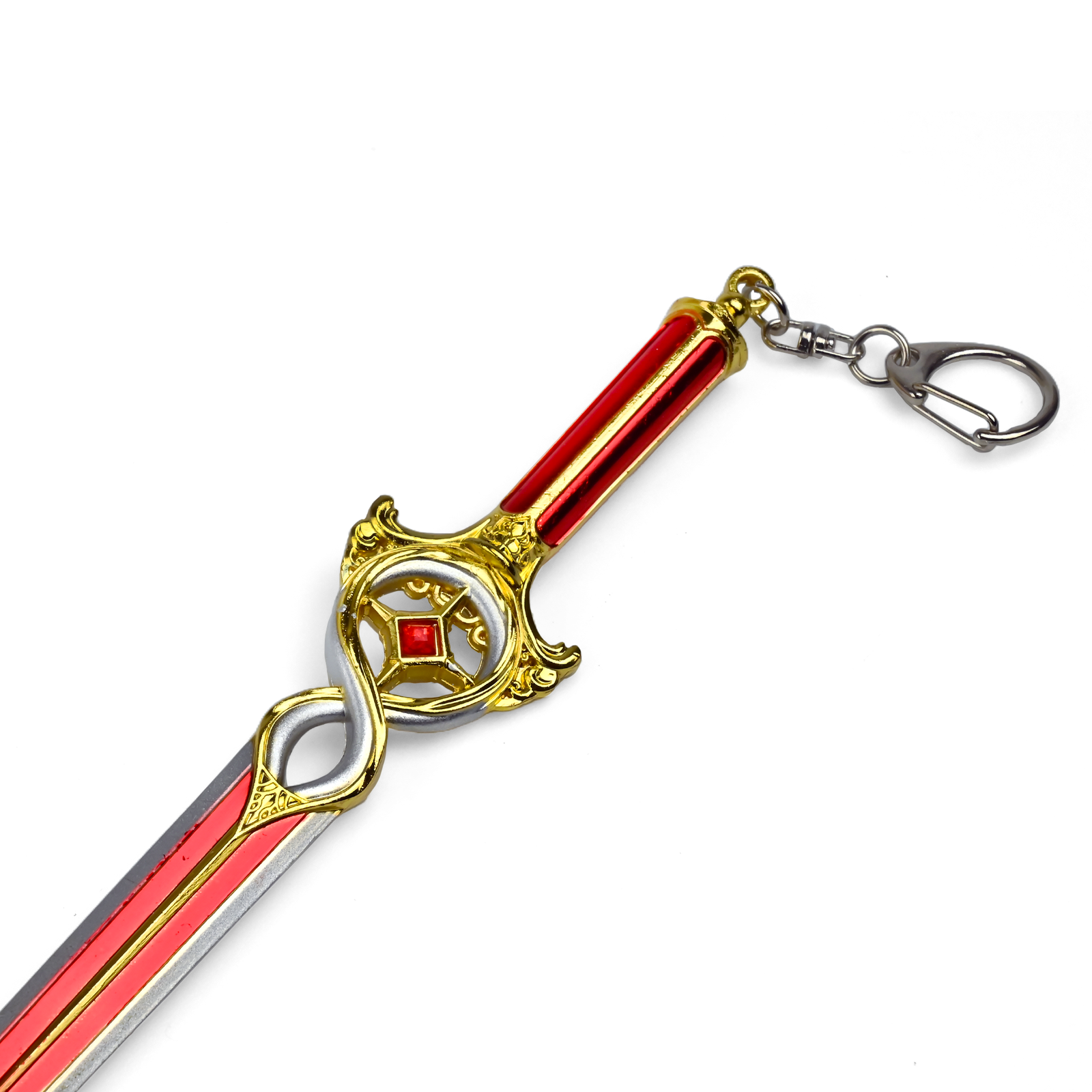 Wzbogać swoją kolekcję o Brelok-replikę Miecza Crimson Mischief, wyjątkowy gadżet dla fanów Baldur's Gate 3. O długości 170 mm i wykonany z wysokiej jakości stopu metalu, ten starannie zaprojektowany model oddaje wygląd kultowej broni z gry, z zachwycającymi detalami i żywymi kolorami. Ostra czerwień ostrza, złote akcenty oraz misternie zdobiona rękojeść sprawiają, że replika emanuje elegancją i siłą. Ten funkcjonalny brelok jest idealny dla entuzjastów gier i kolekcjonerów. Można go nosić jako ozdobę kluczy lub plecaka, dodając odrobinę fantastycznego stylu do codzienności. Dzięki trwałym materiałom produkt zachowuje swoją jakość przez długi czas, będąc doskonałym dodatkiem do kolekcji Baldur's Gate 3. Podkreśl swoje przywiązanie do postaci i przygód z Baldur's Gate 3 dzięki tej precyzyjnie wykonanej replice. Niezależnie od tego, czy jest prezentem, ozdobą, czy elementem kolekcji, Brelok Miecz Crimson Mischief to obowiązkowy skarb dla fanów kultowego RPG.