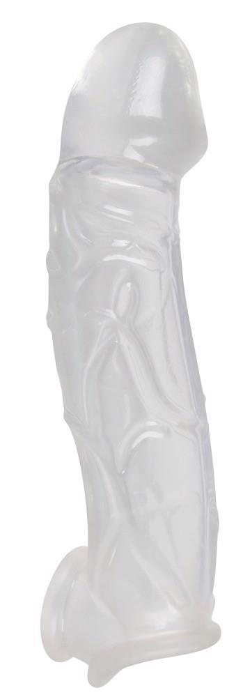 Pogrubia i wydłuża penisa! Ten przezroczysty rękaw na penisa z przedłużeniem i pierścieniem kulkowym marki Crystal Clear pogrubia penisa dzięki grubości materiału i wyraźnym żyłkom oraz wydłuża go o 5 cm dzięki masywnej żołędzi.