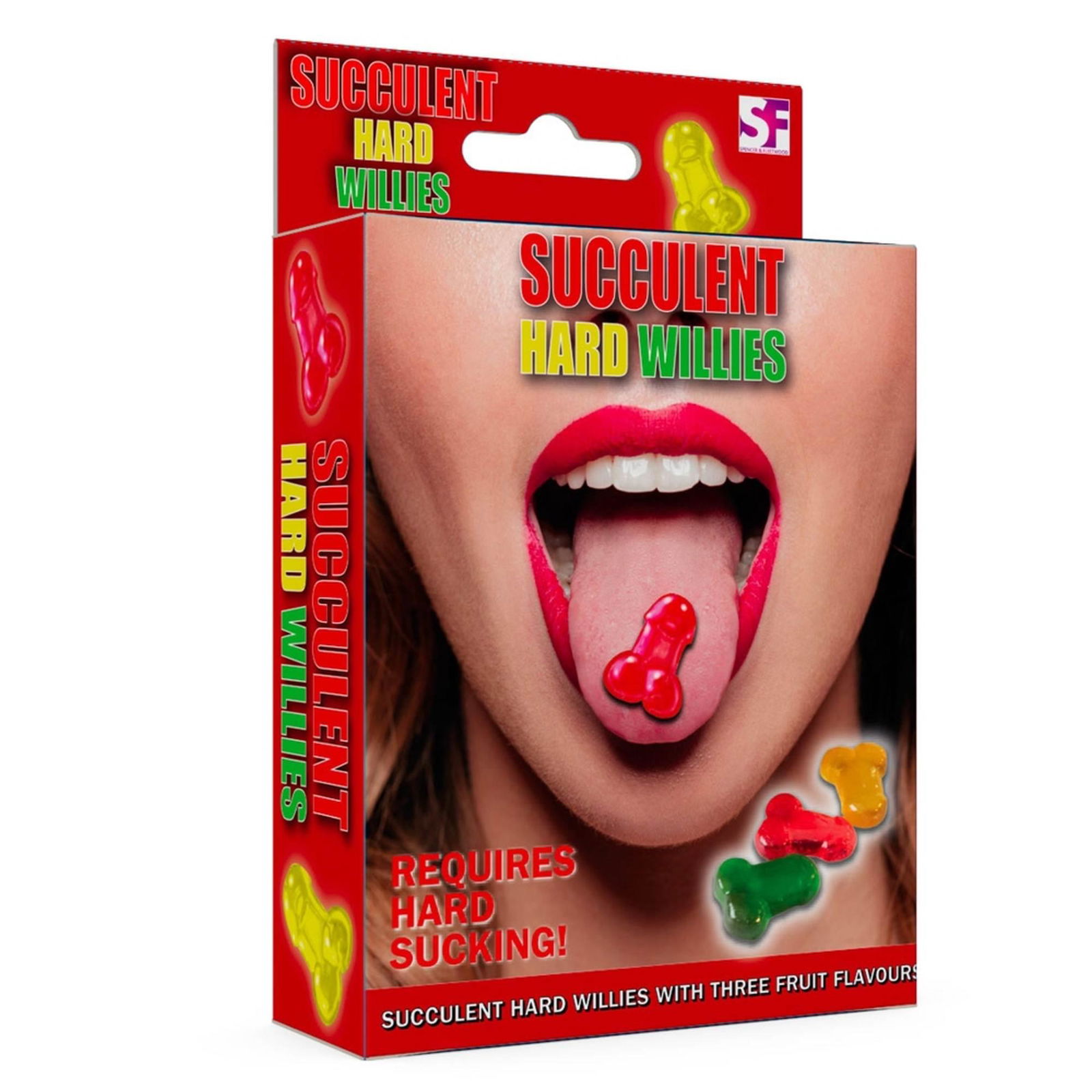 Indywidualnie pakowane, soczyste, twarde cukierki w kształcie penisków. Cukierki są świetnym pomysłem, aby urozmaicić menu np. wieczoru panieńskiego. Mogą posłużyć również jako wspaniały śmieszny prezent. Produkowane w Holandii i Niemczech, przy użyciu wszystkich naturalnych składników.