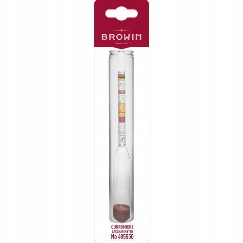 - pływak (areometr) z naniesioną skalą stężenia cukru w stopniach Blg,