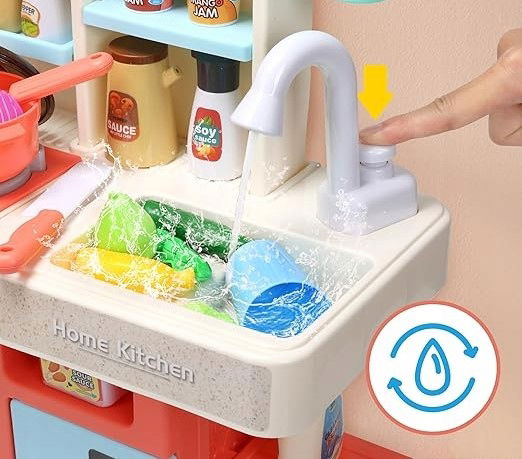 - ?Realistyczny zlew dla ulepszonej zabawy: Zestaw kuchenny zawiera w pełni funkcjonalny zlew-zabawkę z bieżącą wodą, zaprojektowany tak, aby naśladować prawdziwe doświadczenie mycia naczyń i warzyw. Ta funkcja nie tylko zwiększa realizm zestawu do zabawy, ale także uczy małego kucharza, jak ważne są czystość i higiena w kuchni, promując odpowiedzialne nawyki od najmłodszych lat.