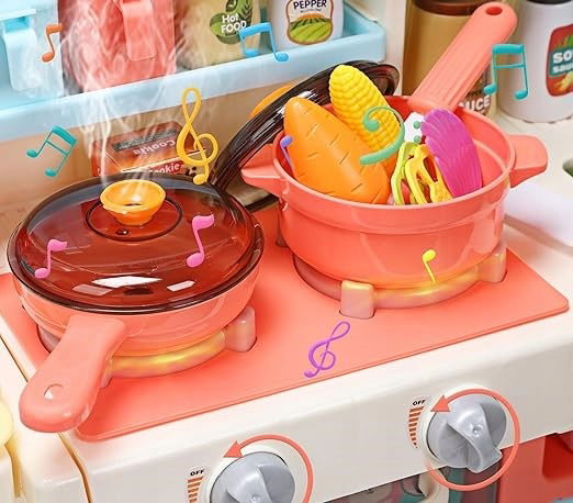 - ?Para, dźwięk i efekty świetlne: Ulepsz zabawę dziecka w gotowanie dzięki kuchence, która symuluje prawdziwe efekty gotowania, w tym parę, dźwięk i światło. Ta dbałość o szczegóły ożywia kuchnię, zapewniając wrażenia sensoryczne, które pobudzają wyobraźnię i zachęcają dzieci do odkrywania radości gotowania i pieczenia.