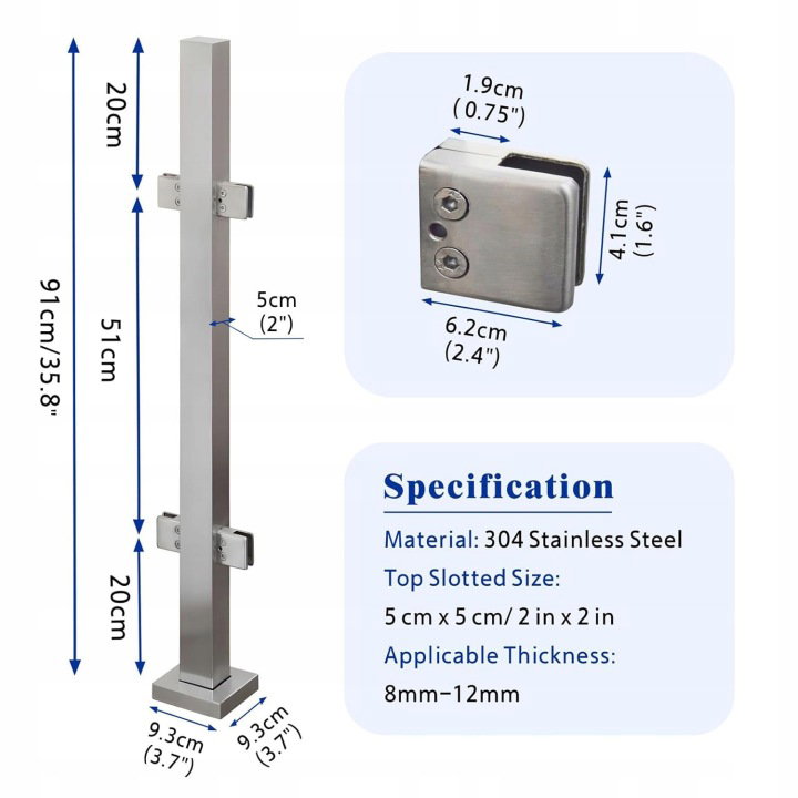 ⭐Kolor i rozmiar uchwytu DIY: Rozmiar klipsa do szkła: 1,6 x 0,9 x 0,9 cala; Grubość szkła: 8-12 mm (0,3 do 0,47 cala); Podstawa słupka: 9,3 x 9,3 cm / 3,6 x 3,6 cala; grubość; Grubość rurki ściennej: 0,059 cm. Oferujemy inne kolory i rozmiary, aby zapewnić Ci idealne słupki szklane do Twojej przestrzeni.