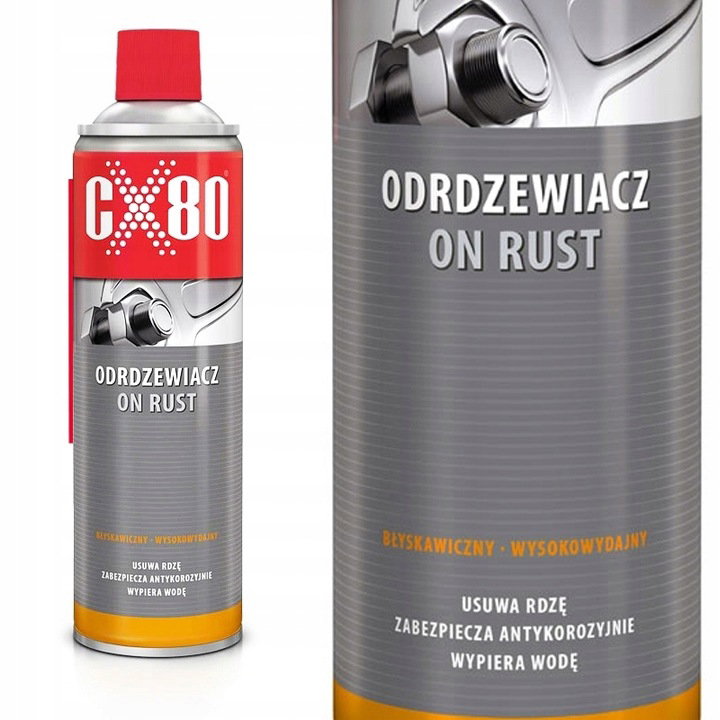 CX80 BŁYSKAWICZNY Odrdzewiacz ON RUST USUWA RDZĘ SPRAY 500ml CX-80 Pojemność opakowania 500 ml