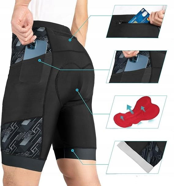 - 【Funkcjonalne kieszenie】Męskie spodenki rowerowe mają 2 głębokie kieszenie boczne i 1 tylną kieszeń zapinaną na suwak, są praktyczne i umożliwiają bezpieczne przechowywanie różnych przedmiotów.