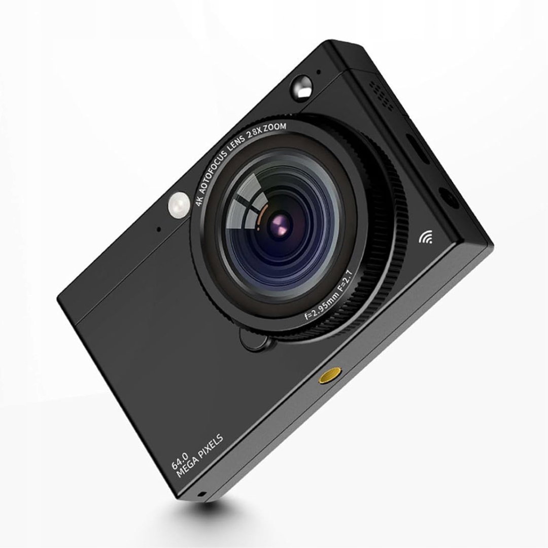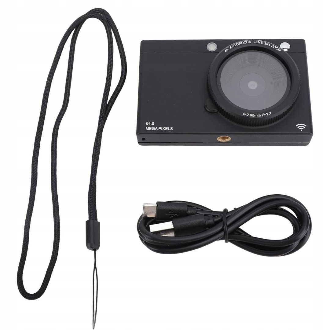 Kompaktowy aparat cyfrowy 4K o rozdzielczości 64 MP, wyposażony w funkcję autofokusu i 28-krotny zoom cyfrowy.
