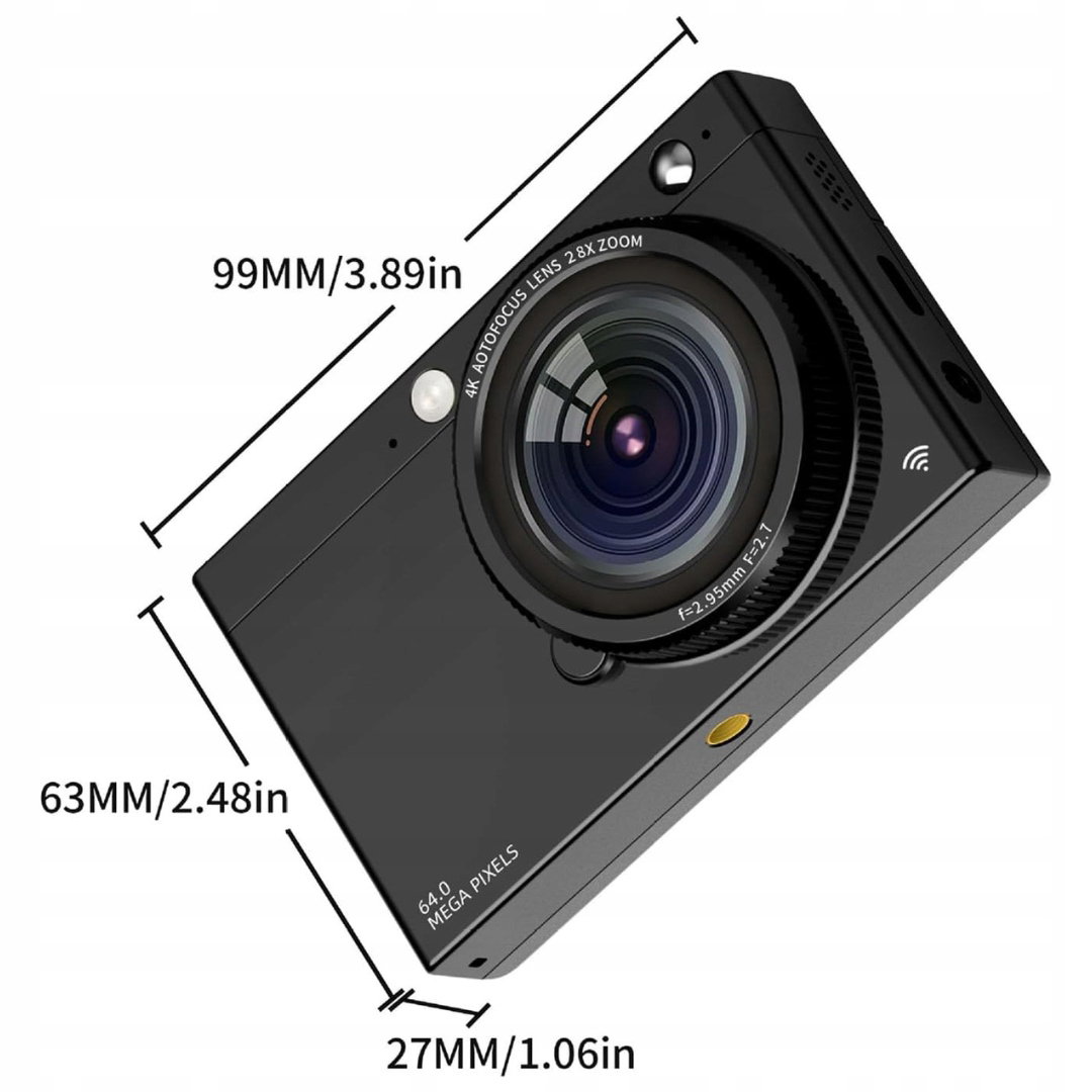 Cyfrowy aparat 4K 64MP vlogowanie retro filtry 28X zoom podróżny kompaktowy