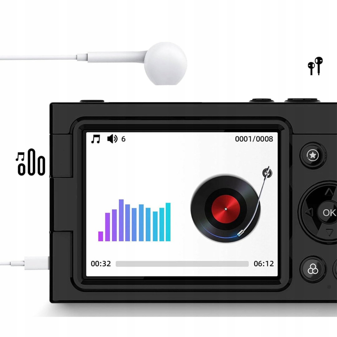 - Kamera cyfrowa 4K: obsługuje nagrywanie w jakości 4K HD oraz wykonywanie zdjęć w rozdzielczości 64 MP, oferując głębię ostrości typową dla profesjonalnych urządzeń. Umożliwia płynne przełączanie między obiektywami – od ujęć zbliżeniowych po szerokie kadry filmowe. Ustawienia aparatu można dostosować manualnie, regulując ISO, ostrość, tryb sceny czy jasność ekspozycji. Dodatkowo aparat pełni funkcję odtwarzacza muzyki i posiada gniazdo słuchawkowe 3,5 mm.