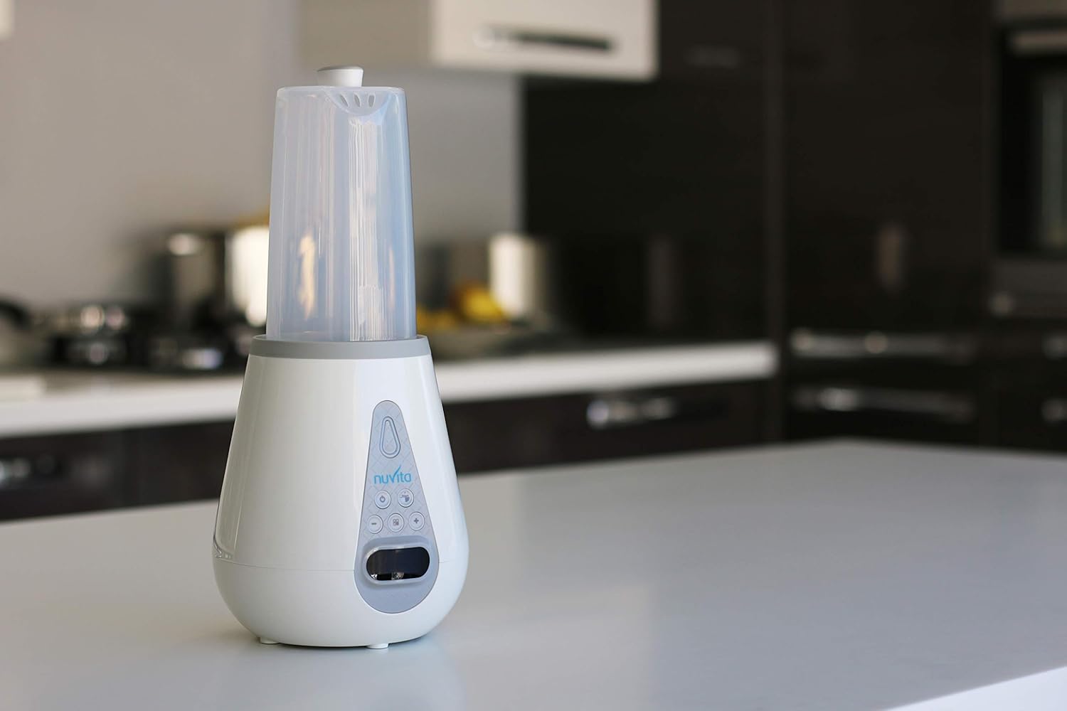 TECHNOLOGIA CYFROWA: Ten zupełnie nowy podgrzewacz do butelek Nuvita wykorzystuje najnowszą innowacyjną technologię. Jego ekran LCD i przyciski sprawiają, że wybór i kalibracja różnych programów to łatwy proces. Ikony są bardzo praktyczne i jasno wskazują rodzaj wybranego programu i jego funkcję. Kompatybilny ze wszystkimi butelkami do 8 cm. średnica!