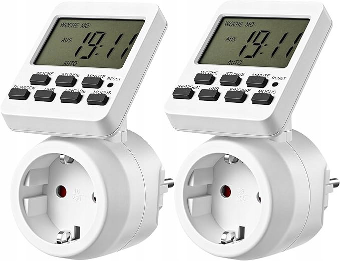Cyfrowy programator czasowy, z 16 programami przełączania, funkcja odliczania, obracany o 180°, gniazdko 2 szt.