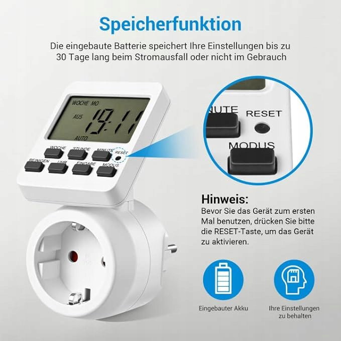 [Cichy i bezpieczny] Brak irytujących dźwięków w porównaniu z mechanicznymi programatorami czasowymi, idealny do instalacji w sypialni lub pokoju medialnym z urządzeniami elektronicznymi; zawiera gniazdko z zabezpieczeniem przed dziećmi.