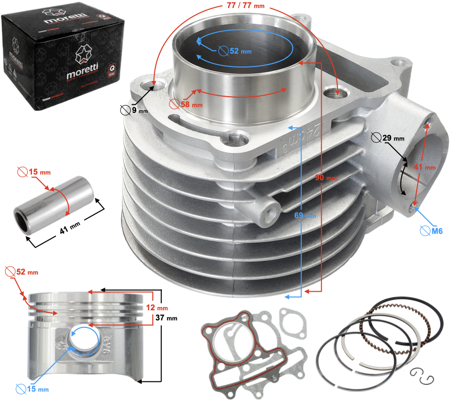 Cylinder Moretti do skutera 4T 125cc 152QMJ sw.15mm