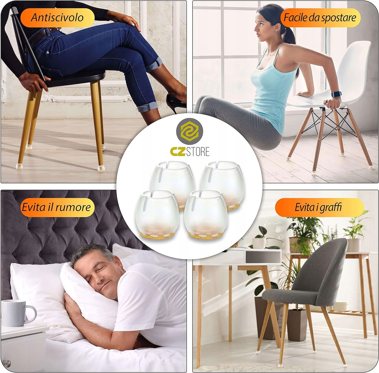 ✅ ŚWIETNA JAKOŚĆ- Chroń swoje drewniane podłogi i oszczędzaj środki. Każdy pakiet zawiera 4 silikonowe podkładki, które możesz przymocować do stołków, stołów, szafek lub krzeseł.