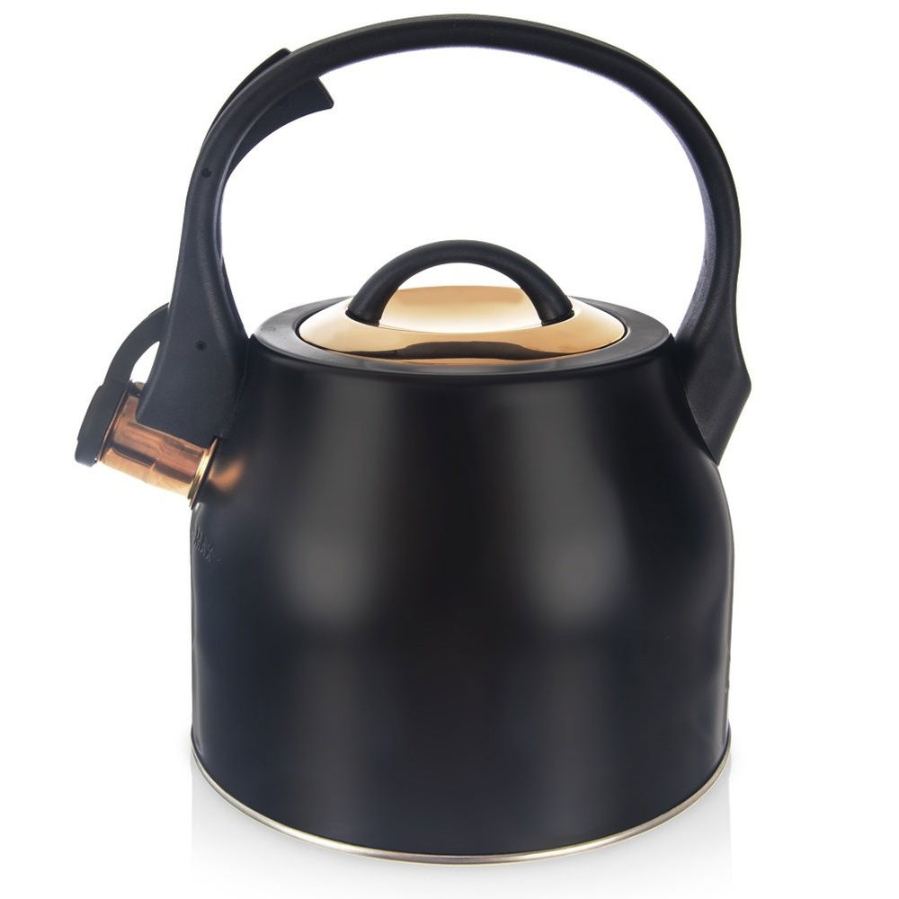 CZAJNIK CZARNY ZŁOTY STALOWY Z GWIZDKIEM DO GOTOWANIA WODY NA KUCHENKĘ