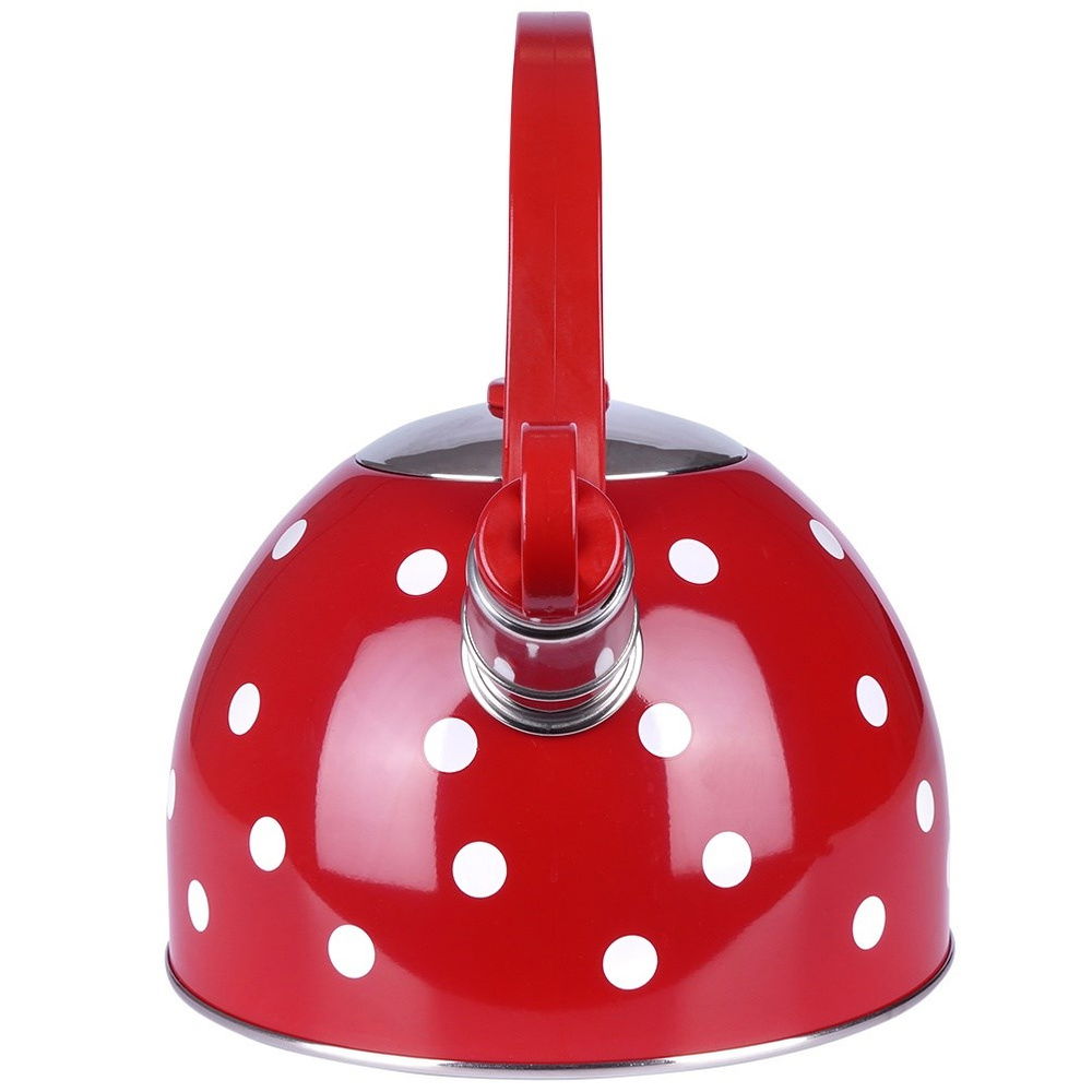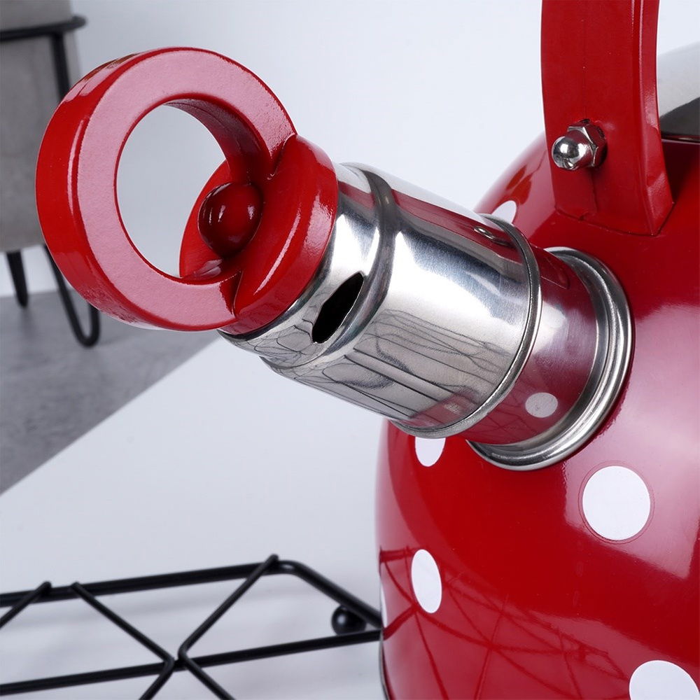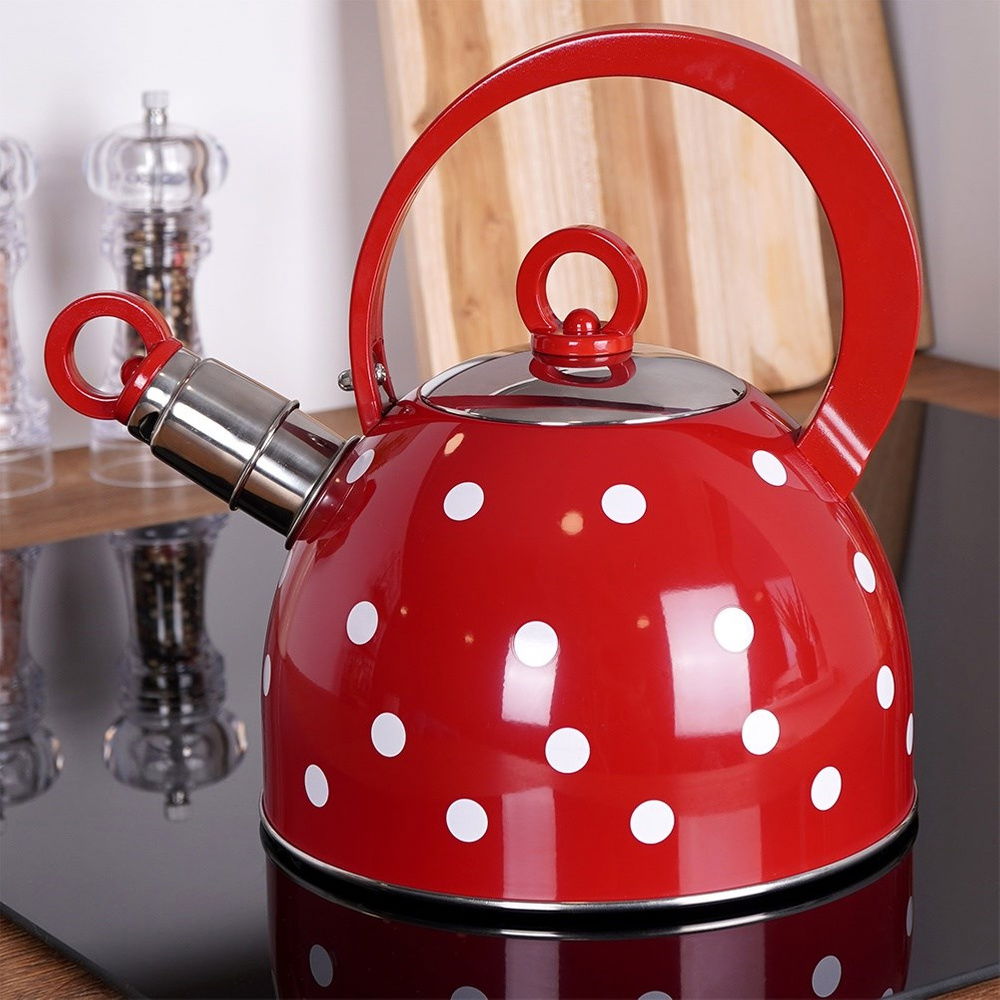 Czajnik Czerwony w Białe Kropki Stalowy Gwizdek do Gotowania Wody