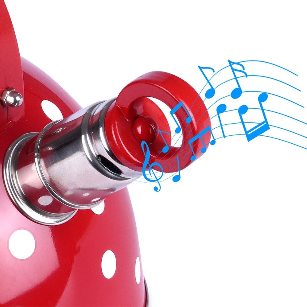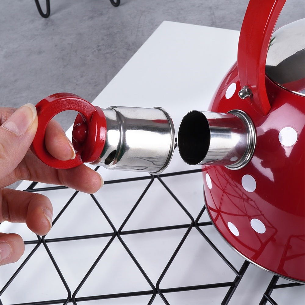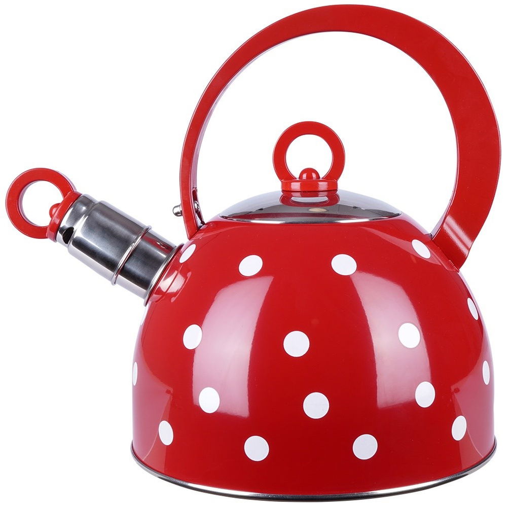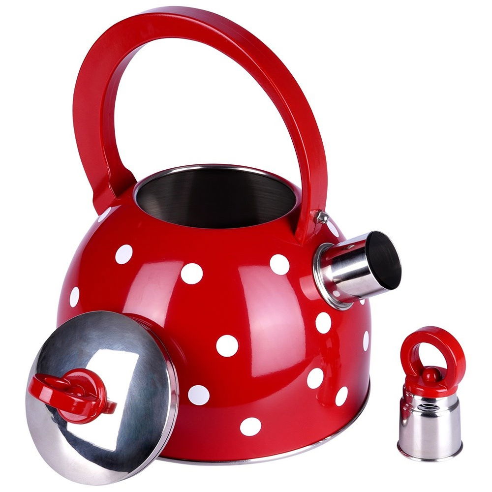 Czajnik Czerwony w Białe Kropki Stalowy Gwizdek do Gotowania Wody