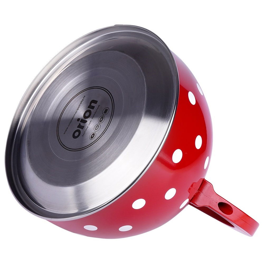Czajnik ze zdejmowanym gwizdkiem utrzymany w stylu retro. Wykonany ze stali nierdzewnej. Czajnik wykorzystamy do gotowania wody. Pojemność użytkowa czajnika wynosi 1,5 litra a całkowita 1,8 litra. Czajnik ma wysokość 22 cm a średnicę 18 cm. Niezwykle efektownie prezentuje się w kuchni. Zachwyca oryginalnym wyglądem w kolorze czerwonym z białymi grochami. Nadaje się do każdego rodzaju kuchenek wraz z indukcją. Wyposażony w wygodną rączkę wykonaną z bakelitu, która ułatwi użytkowanie.
