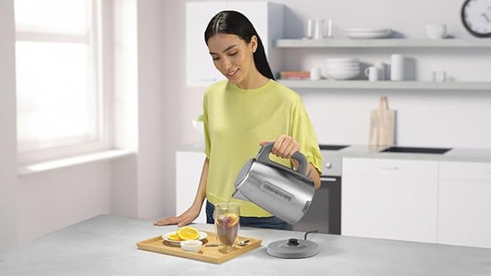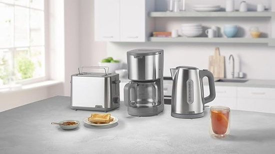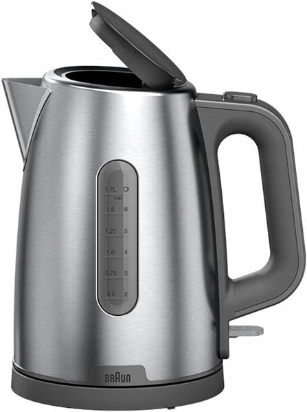 1,7-litrowy czajnik elektryczny ze stali nierdzewnej z systemem Rapid Boil jest idealny do szybkiego przygotowania filiżanki herbaty – gotuje 200 ml wody w zaledwie 45 sekund! Kolekcja, dostępna zarówno w kolorze czarnym, jak i białym, charakteryzuje się kultowym wzornictwem marki Braun oraz detalami ze szczotkowanego metalu, które rozjaśnią każdą kuchnię.
