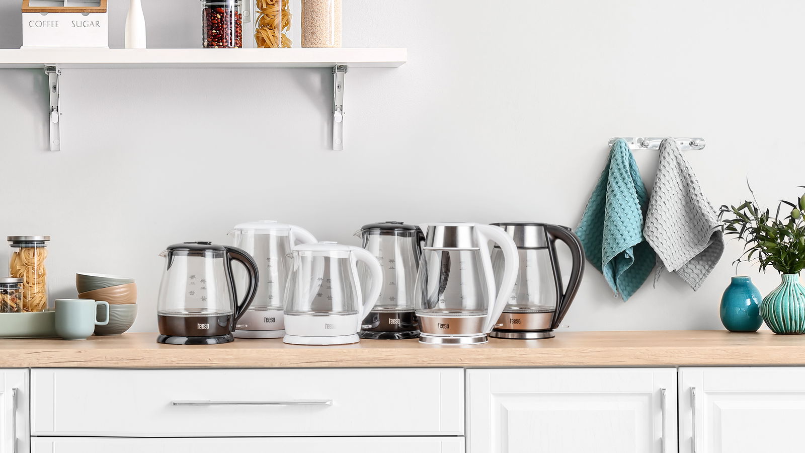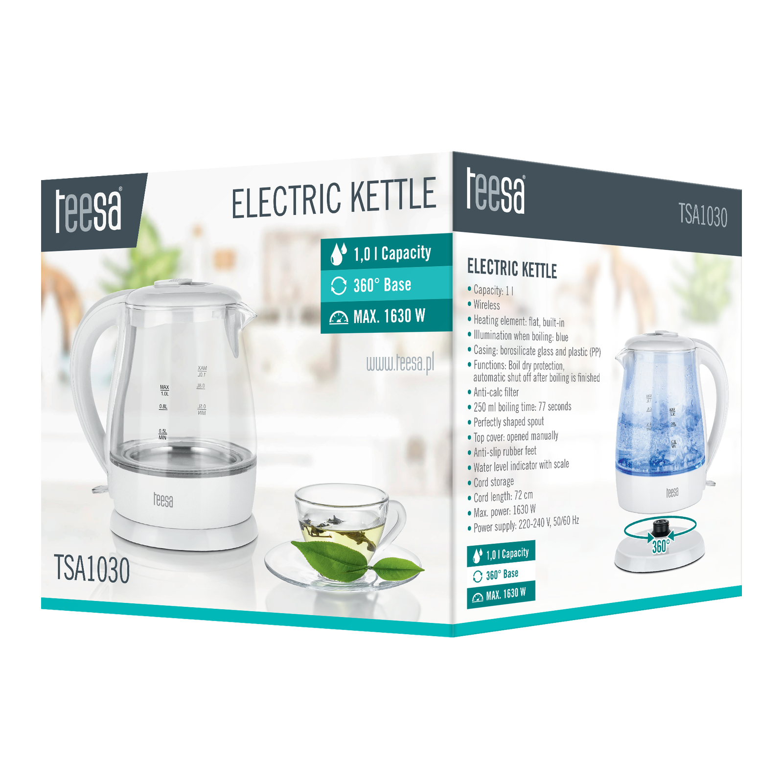 Czajnik elektryczny TEESA, szklany, 1650 W, biały, 1 L
