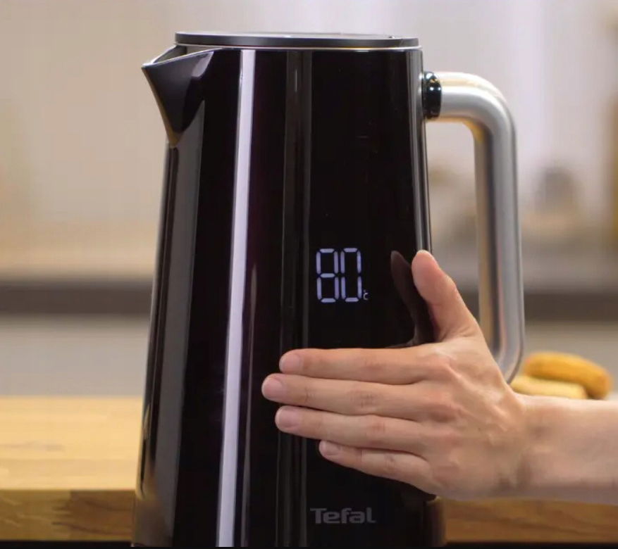 Czajnik Tefal DIGITAL wyróżnia się swoją elegancją i funkcjonalnością. Czajnik ten cechuje stabilna podstawa i czytelny ekran cyfrowy, który pozwala odczytać realną temperaturę wody w trakcie gotowania.