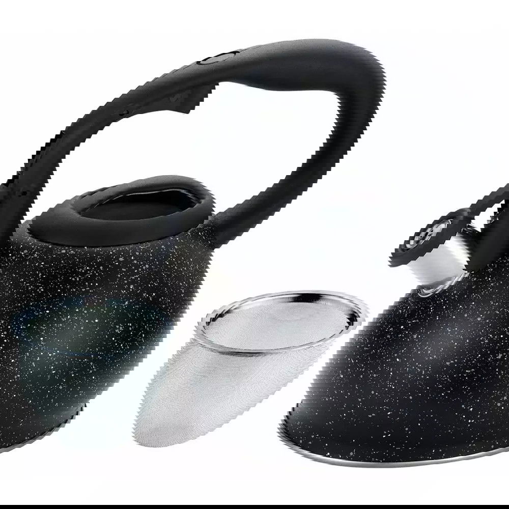 Czajnik metalowy wyróżnia się nowoczesnym designem - modny kształt oraz ozdobna powłoka marmurkowa. Dodatkowo posiada poręczny uchwyt, który nie nagrzewa się i chroni użytkowników przed poparzeniem. Precyzyjne wykonanie oraz liczne dodatki sprawiają, że czajnik to wyjątkowa i funkcjonalna ozdoba każdej kuchni!