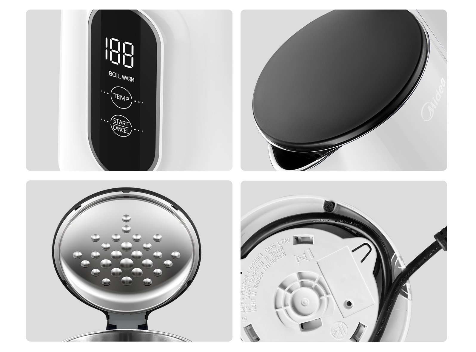 Czajnik Midea 1.5L 2200W Regulacja Temperatury LED Inox Biały