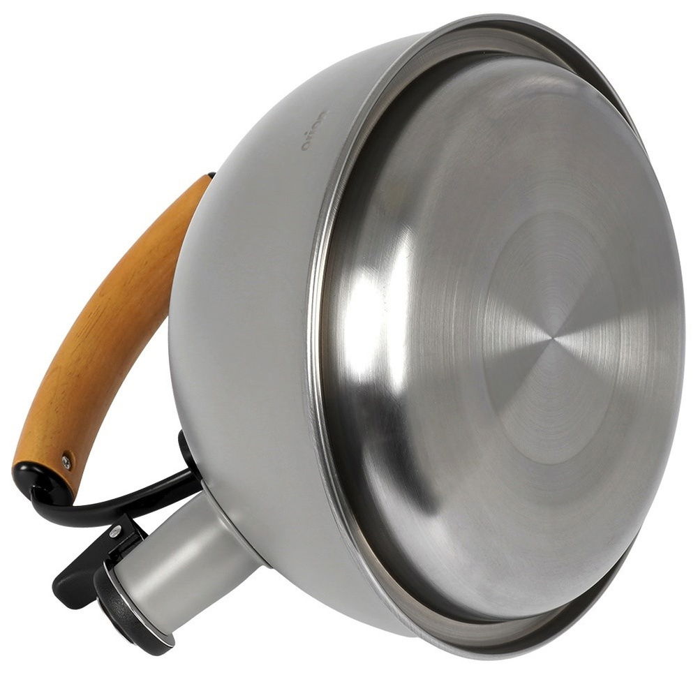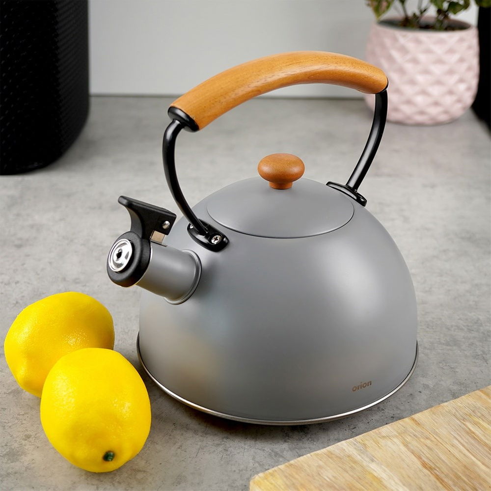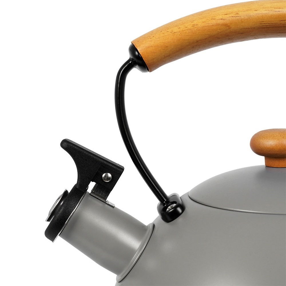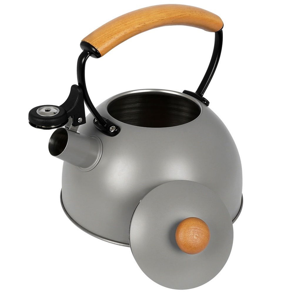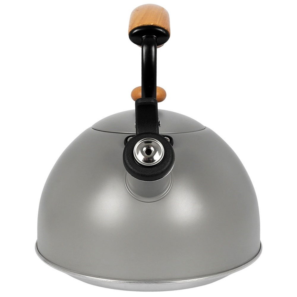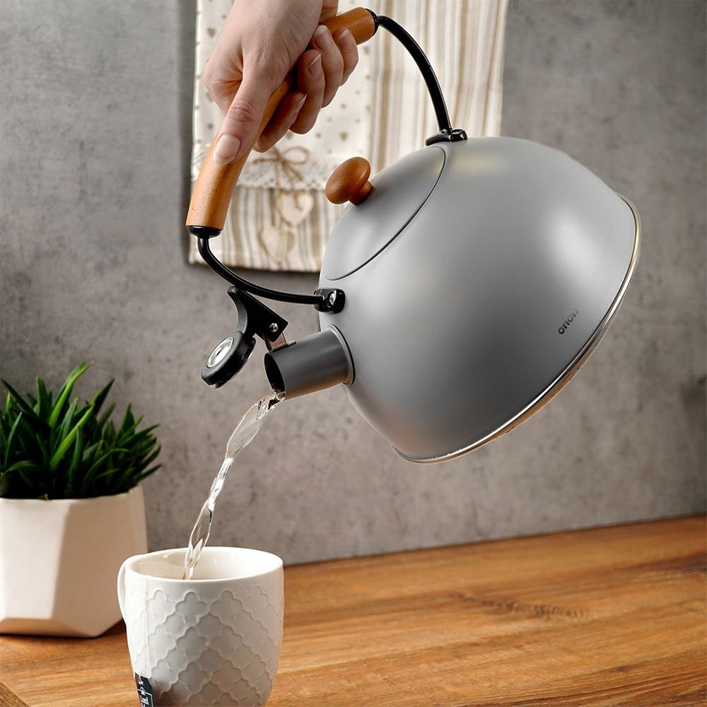 Czajnik Szary Stalowy z Gwizdkiem Drewnianą Rączką na Kuchenkę Gaz Indukcję