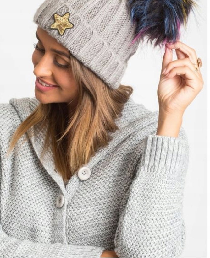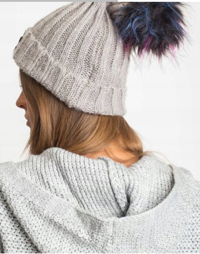 Jedyna sztuka CZAPKA DAMSKA ZIMOWA SZARA Z POMPONEM